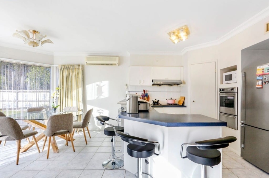 Functional Kitchen & Dining: An open-plan kitchen with ample cabinetry, gas cooking appliances, and a dedicated meals area.